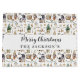 White background with a traditional Scandinavian style Christmas farmhouse decor, gnomes, wood logs, pine trees. Personalize and add your name. Text; Merry Christmas
