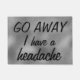 How about this cool black and gray color doormat that says 'GO AWAY I have a headache' written in huge black letters?