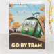 Go By Tram, vintage cartoon travel poster featuring an old vintage Tram.