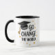 This uplifting graduation design features the phrase Go Change the World with a graduation cap and scattered gold star accents in a clean modern layout. The bold hand-lettered style keeps the message easy to read while giving the design a celebratory and inspiring feel. The simple black, white, and gold color palette makes it feel polished and timeless. It is a strong choice for graduation encouragement, senior celebrations, and motivational class year themes.