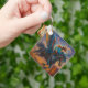 The key chain is made of metal and really sturdy. The flower design is really cheerful. The logo and colors are clear and crisp!