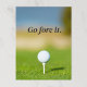 Custom postcard featuring golf ball teed up on the golf course with "Go for it." motivating quote in classic serif typography.