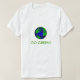 Features a bright blue and green globe, on a sustainable cotton shirt. GO GREEN!