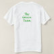 This t-shirt the text is all in green. On the back it says 'The Green Team'!