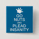 "Go nuts and plead insanity". Using the "customize it" function, you can change (edit) the background color of this item and add your own text if you wish. See my store for more items with this design.