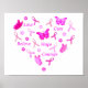 Beautiful pink ribbons, butterflies, and flowers in unique shapes and colors in a heart, and the messages of “Love, Cure, Hope, Believe, Courage” to support Breast Cancer Awareness.