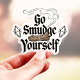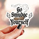 This funny sticker features the phrase "Go Smudge Yourself" with smudge sticks and crystals. Perfect for those who love spiritual cleansing and have a sense of humor. This durable vinyl sticker is great for laptops, water bottles, and more. Show off your love of self-care and good vibes with this unique design!