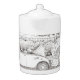 It was great to be able to be creative with my own pictures, and add fonts and other options Zazzle makes available to make my gift personal. The teapot became a special anniversary keepsake my brother and his wife raved about. Just the way I ordered it. I probably should have made the lettering a little darker, or white to stand out against the sky in the photos, but it turned out well.