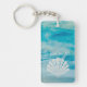 Beautiful rectangle double sided keychain for beach lovers featuring Go With The Tide Ocean Waves Diamond Seashell design