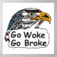 Go Woke Go Broke shows a fine-looking eagle stating the obvious. A cool Anti Woke design for not wearing at your local woke store.