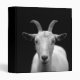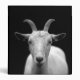 Great closeup photo of a white goat on a black background. If you like these cool animals then you should check out related products and gift ideas with this amazing photo.