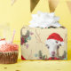 Cute LaMancha kid goat with her Santa hat and antlers adorned with striped Christmas ornaments, surrounded by a holiday wreath of red poinsettias , pine cones, greenery and a big red bow. A © goatlady GetYerGoat™ original - Best for medium to larger packages, the design is approx 6 inches for each goat -