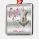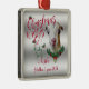CUSTOMIZE THIS Christmas Ornament- Adorable Portrait painting of a LaMancha goat doeling with Christmas greenery, holly and berries, a red bow and mistletoe - with ornate calligraphy text that reads: Christmas Wishes and Baby Goat Kisses all on a removable silver background - remove background to reveal white or choose any color background you like from the customize color picker - Perfect for the goat lover in the family - won't they be surprised to see this unique Original Christmas goat on their Christmas Tree Christmas morning. A ©goatlady GetYerGoat™ original.