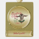 CUSTOMIZE THIS Christmas Ornament- Adorable Portrait painting of a Toggenburg baby goat with Christmas greenery, holly and berries, a red bow and mistletoe - with ornate calligraphy text that reads: Christmas Wishes and Baby Goat Kisses all on a removable gold background - remove background to reveal white or choose any color background you like from the customize color picker - Perfect for the goat lover in the family - won't they be surprised to see this unique Original Christmas goat on their Christmas Tree Christmas morning. A ©goatlady GetYerGoat™ original.