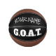 GOAT Greatest Of All Time custom mini basketball. Funny personalized ball for kids and adults. Create one for dad, husband, uncle, brother, grandpa, coworker, colleague, boss, sports coach, best friend, trainer, father, boyfriend, son, grandson etc. Fun sports accessory for guys. Make your own humorous present for Birthday, Father's Day, Christmas etc. Customizable in different colors. Black and white example. Bold and handwritten typography template. Add your own funny quote or saying optionally. Available in small and official regular full size.