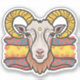 A whimsical and eye-catching goat head sticker with a playful expression. The goat has a pair of prominent horns, and its eyes sparkle with a mischievous gleam. The sticker's background is a soft gradient of blues and purples, accentuating the goat's vibrant colors. This sticker would be perfect for decorating a laptop, notebook, or any surface in need of a bit of whimsy.