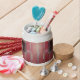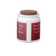Goats sharing a joke on this candy jar with a red barn and windows.