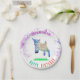 Colorful, cute watercolor jumping baby goat in vibrant pink, purple, blue, orange, yellow and aqua. A cute farm animals kids any age birthday party paper plates with an adorable multicolored baby goat. This fun party decor is easy to personalized to create a unique party supplies suitable for children and adult goat lovers. Colorful psychedelic goat original illustrations by artist Catherine Sweetman