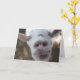 Whether you're a young kid or an old goat, chances are that you can't resist this "Goat Who Stared at Man" greeting card. This greeting card features a closeup of a white goat with grey spots staring into the camera. The haunting eyes clearly say, "You are going to do my bidding," while the pink of the goat's nose and ears add a touch of femininity to this card. This greeting card is perfect for everyone from George Clooney to Old MacDonald.