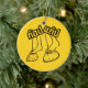 Lightweight, smooth, pure white ornament with nice sheen. Perfect size to be seen from across the room ... and to attract closer inspection! Price was great for ordering enough for the whole family! Clear, bold black design just as requested. Matches the order exactly. Just so nice!