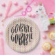 Dress up your holiday gathering with this rustic yet still fun and festive paper plate which features multi color oval dot background and the words 'Gobble Gobble'. These paper plates will look gorgeous at any placesetting whether formal or fun - especially great plate for kids' tables. They also make clean up a breeze allowing one to spend more time mingling with guests. Visit our Holiday Table Collection for other coordinating items.