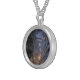 I chose gold plated so that the metal would not react with my skin oils and perspiration. But, I changed the necklace from the gold plated one to a sterling silver. My skin cells will tarnish the silver. But it will not look as bad if some portion of the gold plated necklace somehow became compromised. Zazzle did a find job turning the picture into a pendant for me. As you can see, the colors and the printing of the final product, match the preview. The picture I took is not very clear. But I am pleased with the product I received.