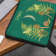 My illustrations depict a natural world with some dark undertones. A crescent moon hangs in the sky above a scene of green ferns, yellow moths, brown mushrooms and a green and brown snail all set against a painted dark teal colored background. This laptop sleeve is ready to be personalized with a name or other text in yellow lettering.