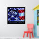 An abstract patriotic image with a waterdrop over a flag background with concentric circles radiating outward. May God Bless America.
