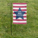 Home And Garden Flag Sign printed with God Bless America Red White And Blue lettering and stripes artwork design by TheFabricSeal