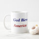 Show your patriotism with this flag waving coffee mug saying "God Bless America"
