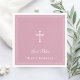 These simple yet classic baptism cocktail napkins would be perfect for the person you love's baptism celebration. They have a traditional white cross with "God Bless" in a traditional script font and the person being baptized name in white on dusty rose.