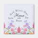 Beautiful Christian quote which combines "God Bless Our Home with Love Peace and Joy" with floral wildflowers and butterflies.