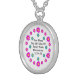 I chose gold plated so that the metal would not react with my skin oils and perspiration. But, I changed the necklace from the gold plated one to a sterling silver. My skin cells will tarnish the silver. But it will not look as bad if some portion of the gold plated necklace somehow became compromised. Zazzle did a find job turning the picture into a pendant for me. As you can see, the colors and the printing of the final product, match the preview. The picture I took is not very clear. But I am pleased with the product I received.