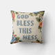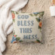 "Add charm and whimsy to your space with this delightful pillow, featuring a faux wrapped canvas design with a beautiful needlepoint embroidery look. The design showcases a delicate floral border with vibrant orange and blue flowers intertwined with leaves on a soft, natural background. The phrase 'God Bless this Mess' is elegantly stitched in a blue font, bringing humor and warmth to your décor. Perfect for living rooms, kitchens, or entryways, this pillow is ideal for those who love quirky, faith-inspired artwork with a rustic, handcrafted touch. The natural tones and vibrant colors make it a versatile addition, complementing modern, farmhouse, or boho styles.