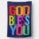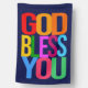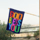 A colorful decorative image "God Bless You" against the navy blue background. A two-sides printed house flag. The expression of peace of soul, love, and god's blessing. Customizable. You can change the image. This unique house flag can be found in the "Festival Of Gifts" collection or in the "Home"-->"Garden & Outdoor"-->"Garden & Outdoor Decor"-->"Outdoor Signs & Flags" department. Buy one, have fun, and be happy.