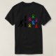 My 11 yo wore adult XL (5’7” 165#). The 8yo is small framed. She wore adult small and tied it in the back. Grandma wore adult large with long sleeve shirt underneath. Tall girl adult medium. Dark haired male adult large. Good quality dark Heather gray, Gildan brand shirt. -it was next up from basic choice and cost about $20 per shirt. Not too thick or thin. Washed and dried well, no major shrinkage. Not see-through. Can wear a bra under it fine. Screen print is just as shown and well done, front and back.