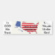 Unique flag-map-outline bumper with America's favorite God slogans. Flag has red-cross and green empty tomb stars among white on blue.