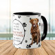 A beautiful Chesapeake Bay Retriever Dog sits on two sides of this mug. The text between the two images says "On the 8th day, God created the CHESAPEAKE BAY RETRIEVER and called it VERY GOOD". The dog images and the white oval banner containing the text fields are placed on a white background with black paw prints.