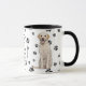 A golden yellow Labrador Retriever Dog looks out at you from two sides of this mug. The text between the two images says "On the 8th day, God created the LABRADOR RETRIEVER and called it VERY GOOD". The dog images and the white oval banner containing the text fields are placed on a white background with black paw prints.