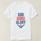 God Guns and Glory is for the die hard American who is proud of this country and what it stands for. Support America, the right to bear arms and your love for God with this one-of-a-kind tee.
