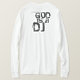 God is a DJ. Small text on front and a big one on the back. A really cool long-sleeved heavyweight t-shirt for those who thinks God is a DJ. Wear it at your local club and get the DJ and the dancefloor new favorite.