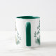 Inspirational quote coffee mug depicts a simple nature watercolor design with a forest of green and gold pine trees. It features an encouraging Christian quote, "God is Faithful All the Time."_