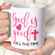 God Is Good All The Time Polka Dot Christian Coffee Mug. Cute pink polka dots christian quote coffee mug.