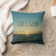 God is Good Quote Pillows. Inspirational, motivational Christian quotes/messages for throw pillows. This design features a beach themed design (sunset over the ocean) with a blue tint for a retro inspired feel, framing the quote, "God is Good".