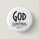 Modern, stylish, CHRISTIAN SCRIPTURE button that says GOD IS IN CONTROL AND HE HAS THE FINAL SAY, which is based on Proverbs 16:9. This is a simple design with bold black typography. This inspirational quote declares the sovereignty of God over your life, and would make a wonderful favor gift at any time of year.