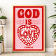 Enhance your space with this beautiful "God is Love" wall art inspired by 1 John 4:8. The design features a warm color palette of red and pink with delicate hearts and foliage framing the inspiring message. Perfect for adding a touch of faith and elegance to any room, this piece is ideal for those seeking to reflect their beliefs in their home decor or to give as a meaningful gift.