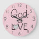 This is a beautiful light pink and gray round wall clock that says 'God is LOVE' printed in big letters. A cute gray heart replaces the letter 'O' in LOVE. It will make a beautiful Christian gift idea for someone you love...