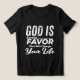 This motivational black tee offers an uplifting spiritual forecast: "GOD IS Sending FAVOR That Will Change Your Life". The distressed white typography conveys a strong message of divine fortune, expectation, and positive change through faith.