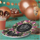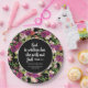 Blush pink and purple watercolor floral on black Christian Bible verse graduation party paper plates personalized with your name, school name (high school or college) and graduation year. Text says, "God is within her she will not fail. Psalm 46:5"