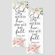 This beautiful bookmark graphic features a watercolor floral design with pink roses and a teacup on books. The center contains the biblical quote 'God is within her, she will not fall,' from Psalm 46:5, in an elegant script font, creating a serene and inspirational religious design.